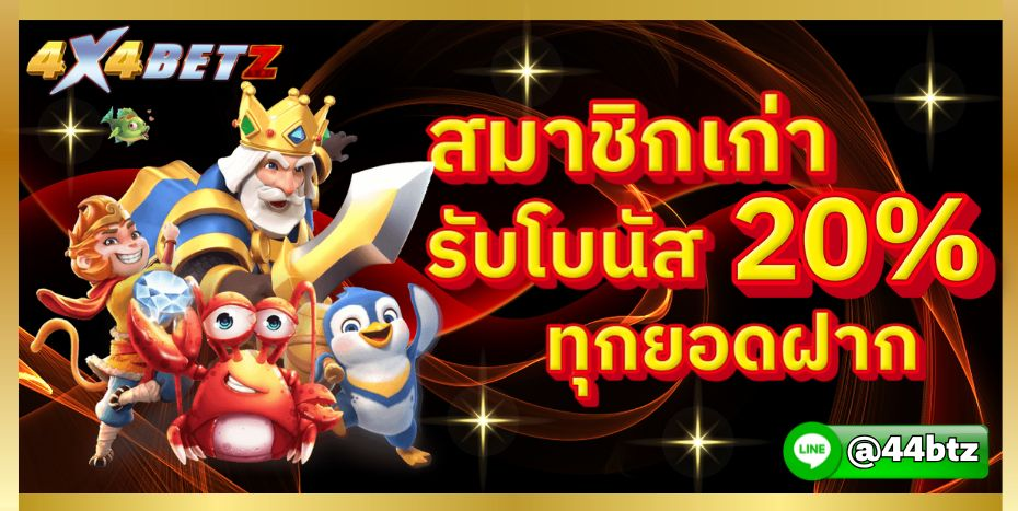 สำหรับสมาชิกปัจจุบัน ทาง 4X4BETZ ก็ไม่ทอดทิ้ง มีโปรโมชั่นคืนยอดเสียรายวันให้สูงถึง 10% เรียกได้ว่าแม้วันไหนดวงไม่ดี ก็ยังมีเงินคืนมาปลอบใจ และทุกการฝากเงินยังได้รับโบนัสเพิ่ม 10% อัตโนมัติ ไม่ต้องทำเทิร์นโอเวอร์สูง ถอนได้ทันทีที่ต้องการ